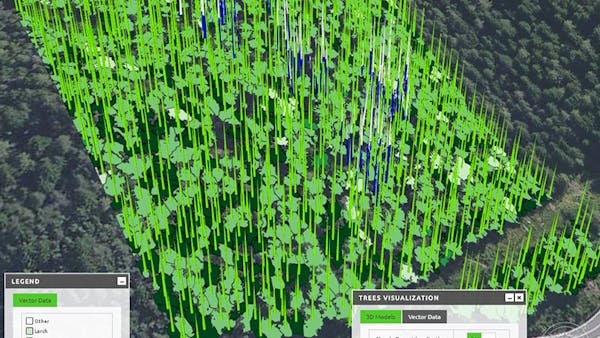 Creating a good end-user experience with this huge amount of sensor data, requires a smooth and reactive visualization of the forest content with the highest detail possible. 3D Harvesting Planner is an online system that reveals information about material origin, quality, and availability in real time. 3D Harvesting Planner uses a highly customized version of the Cesium JavaScript Library, called GeoBrowser3D, which offers a 3D OGC compliant solution, integrated with computational and visual techniques for an ideal decision-making environment.