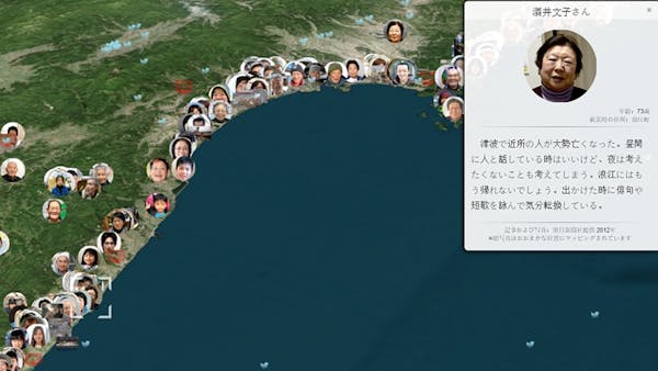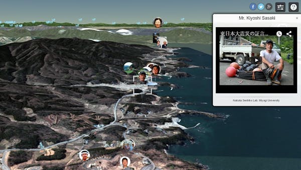 Originally published using the Google Earth API, in 2015 the East Japan Earthquake Archive was converted to Cesium. The archive earned an honorary mention by Prix Ars Electronica 2013.