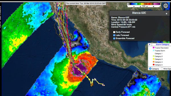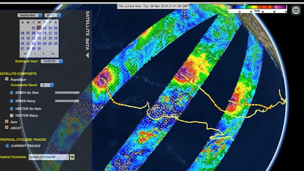 The portal has a special focus on tropical storm monitoring; therefore, it also includes the real-time storm tracks (updated at every 6 hours) and NOAA hurricane forecast tracks from multiple models. To provide a comprehensive depiction of the ocean surface winds, the portal includes near real-time wind measurement from another instrument: the European Advanced Scatterometer (ASCAT). To facilitate the understanding of the relationships between wind and rain, the portal also includes precipitation measurements from two microwave instruments, GMI (the Global Precipitation Microwave Imager) and AMSR2 (Advanced Microwave Scanning Radiometer). All the image data can be overlaid on top of each other with transparency control. The wind vectors and wind speed are separate layers that can be viewed together or separately. We have archived the scatterometer data since November 2014, and the archived data can be viewed via a calendar-controlled menu panel.