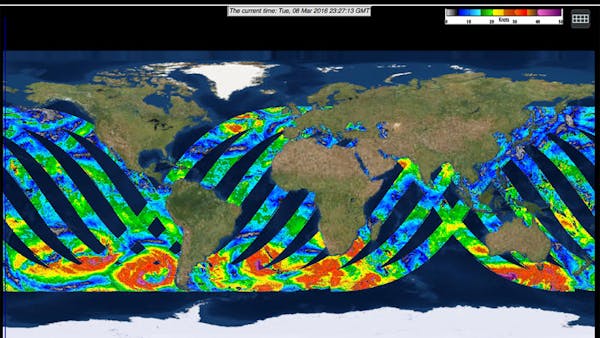 The RapidScat portal is an interactive portal to visualize the ocean wind speed and direction observed by RapidScat. The orbital data arrives with 3-4 hours’ delay and can be viewed as a single orbit or as a composite of 3-hour, 6-hour, 12-hour, or 24-hour.