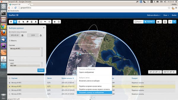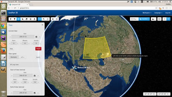 Users first pull up an imagery subset based on their specified criteria (spacecraft, sensor, date or orbit, region of interest), then look through the images, and finally download selected imagery segments for inspection in user-specified data-processing. A variety of formats are available. To aid users in finding images, GeoPort 3D includes ballistics calculations and propagation of spacecraft, as well as sensor scan path visualization.