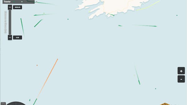 With Cesium, users can view and dynamically filter monthly heat maps of fishing activity by vessel type and distance to shore. Heat maps are generated using the Datashader Python library and displayed as primitive collections in Cesium. When the user zooms in to smaller regions on the globe, the general heat map is replaced with animated vessel tracking data that indicates fishing and non-fishing movements using selectable Cesium entity objects.