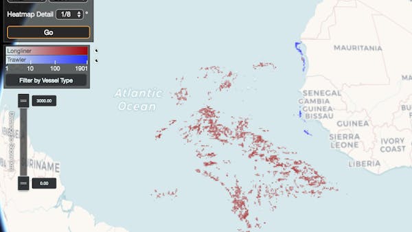 View Worldwide Fishing Activity Heatmaps and Vessel Tracking Animations