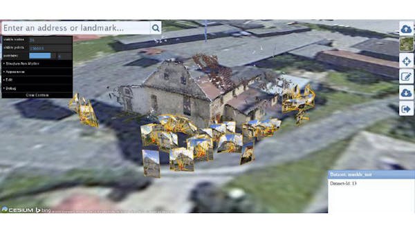 With OpenSfM, users were able to explore SfM-datasets stored in a central database; generate new SfM-datasets and share them with other users using the system; extend or improve any existing SfM-dataset available in the system; and download SfM-datasets and use them for further offline processing. The datasets were rendered in the context of an interactive virtual globe built with Cesium.
