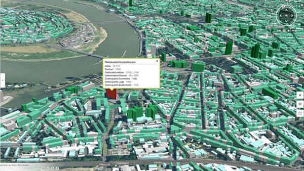 virtualcitySYSTEMS products are built on CesiumJS and 3D Tiles. They’ve wrapped CesiumJS and OpenLayers into the virtualcityMAP mapping framework, which enables users to view 3D city models, massive point clouds, oblique imagery, and 2D data in one web application. With virtualcityMAP, users have visualized CityGML objects, LiDAR point clouds, digital elevation models, raster data, Web Map Services (WMS), and Web Feature Services (WFS).