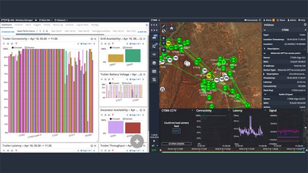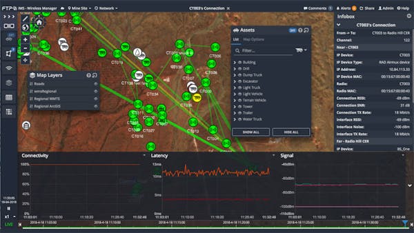 IMS Wireless Manager, developed by FTP Technologies, is a live, real-time wireless network monitoring solution. It monitors, collects, and stores a user’s network performance data, and it allows users to go back and “replay” any network issues to assist root cause analysis. It can be used to monitor networks of any size, but is primarily designed for large-scale outdoor networks such as those found on mine sites.