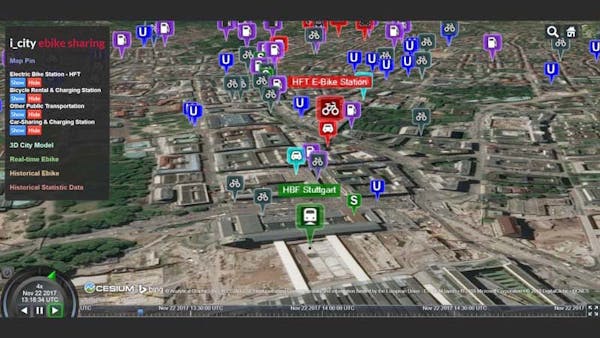 Built as part of Thunyathep (Joe) Santhanavanich’s master’s thesis, i_city E-bike Sharing is an application made with Cesium for analyzing the E-bike sharing system in Stuttgart.