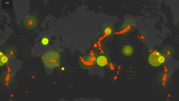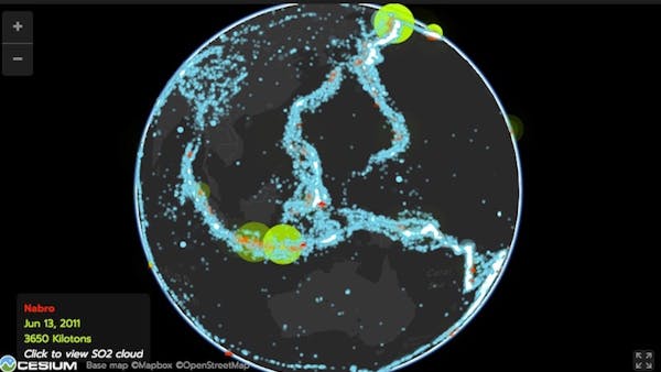 The Smithsonian Institution’s Eruptions, Earthquakes & Emissions (E3) app is a time-lapse animation of volcanic eruptions, earthquakes, and sulfur dioxide emissions from volcanoes for the last fifty years.