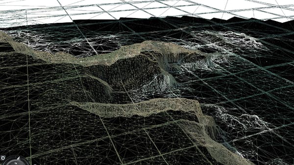 The wireframe view below makes the detail in the new data obvious. Compare the old terrain (right) with new terrain (left).