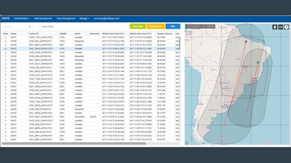Within their satellite imagery collection planning solutions they use 3D map visualization to show the satellites and their ground track; field of regard and constraints for the sensor; the camera boresight path and off-nadir guidelines; collection orders and labels that are color-coded by status; and terrain and forecasted cloud cover. Within the map, users can zoom in or out, manipulate what is displayed (or not), change colors, adjust the viewpoint, and animate the plan. They employ this Cesium visualization for collection planning from space-to-ground, space-to-space, and ground-to-space. The 3D visualization provides insight that Gantt charts and tables do not fully realize.
