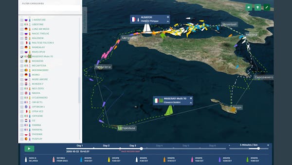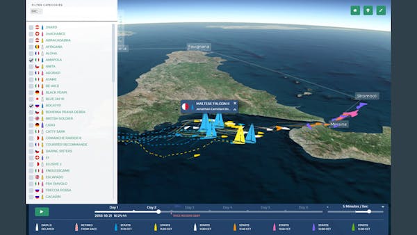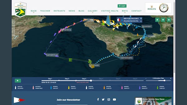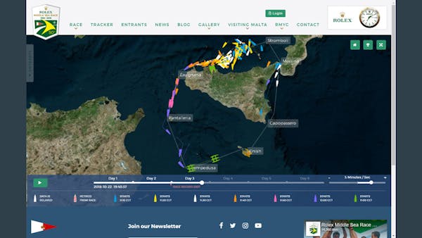 The Rolex Middle Sea Race Tracker follows 130+ racing yachts on their 2—6 day race around the islands of Malta, Sicily, Stromboli, Favignana, Pantelleria, and Lampedusa.