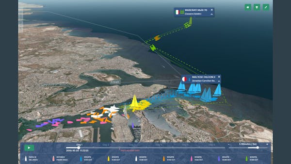 The race’s first tracking application was created in 2010 using Flash. For the 50th anniversary of the Rolex Middle Sea Race, they migrated to Cesium, enabling beautiful visualizations for both desktop and mobile users.