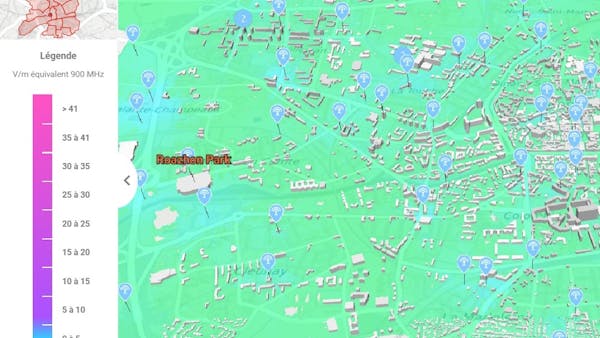 To build the model, Siradel first took an exhaustive inventory of the city’s relay antennas, then measured the peak levels of exposure in the streets for all mobile networks. Using their Volcano radio propagation modeling software, they also simulated the level of exposure to EMF on the ground, walls, and roofs of buildings in 3D for the whole city.