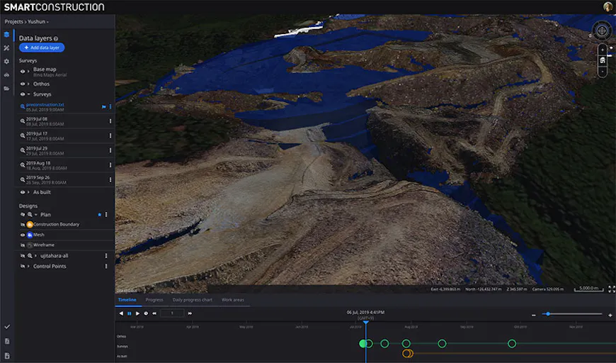 The Cesium application for Komatsu Smart Construction provides an end-to-end workflow including graphics and reports.