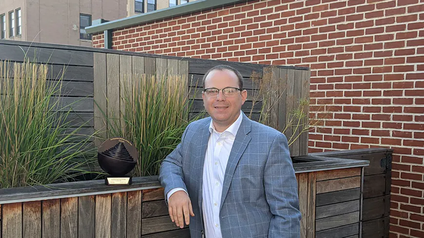 Cesium CEO Patrick Cozzi with the 2020 Geospatial Startup of the Year award.