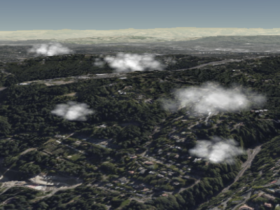 A cumulus cloud billboard positioned in the 3D scene, that is created and rendered using a CloudCollection.